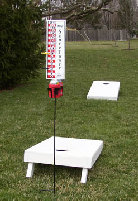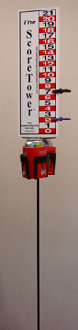 The ScoreTower is a double-sided free-standing scorekeeper for your CornHole games. It easily pushes into the ground, and brings the score to a convenient height for all players. The color-coded ScoreClamps(TM) are easy to read and set. The step-stake is made from heavy gauge steel with black powder coat paint for endurance. The scoreboard is made from all-weather plastics designed to stand up to outdoor use.